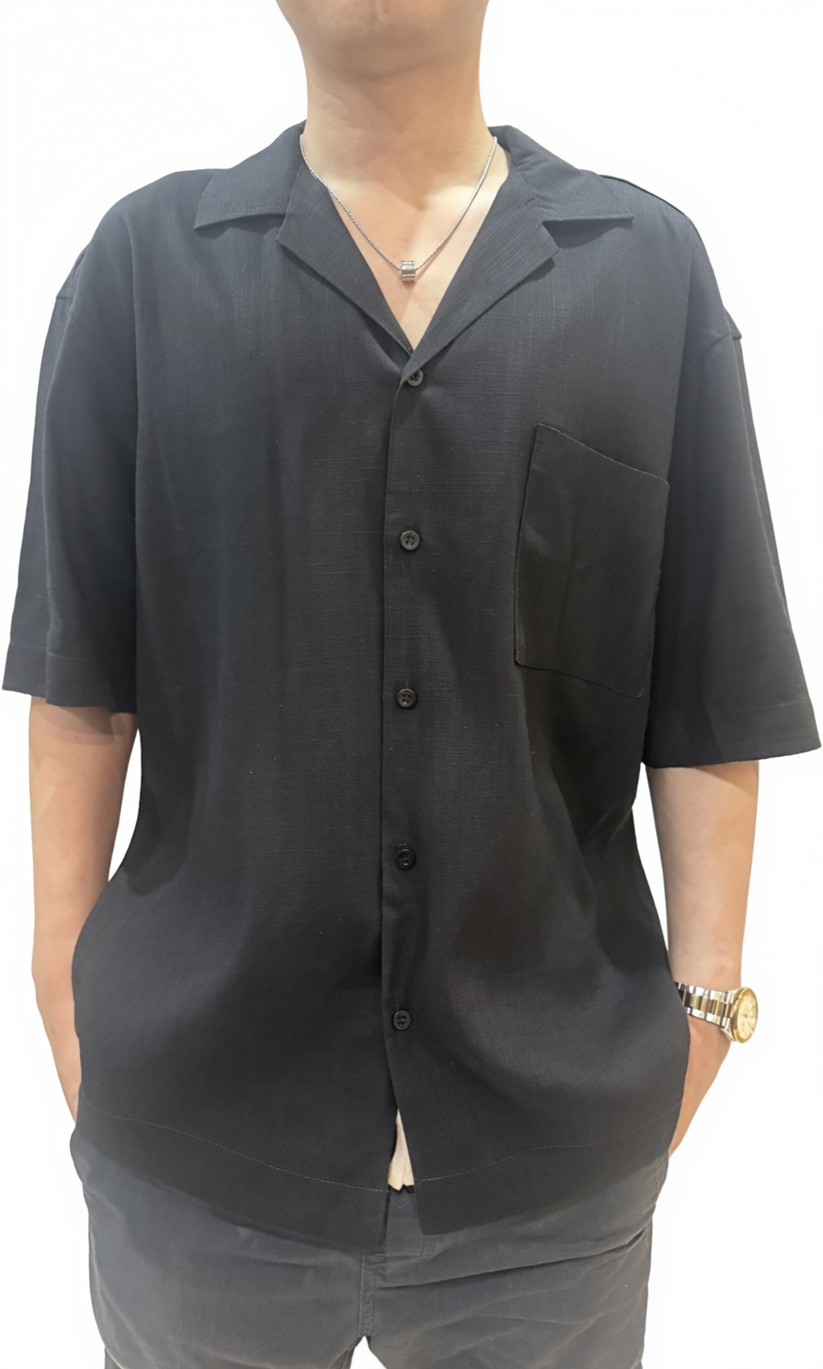 A relaxed short-sleeve shirt designed for easy everyday wear, whether styled casually or dressed up slightly for work and weekends. Featuring a clean open collar neckline and a soft, breathable fabric, this shirt offers a comfortable drape without feeling restrictive. Ideal for warm weather, travel, or smart-casual settings, it pairs effortlessly with trousers, chinos, or shorts.