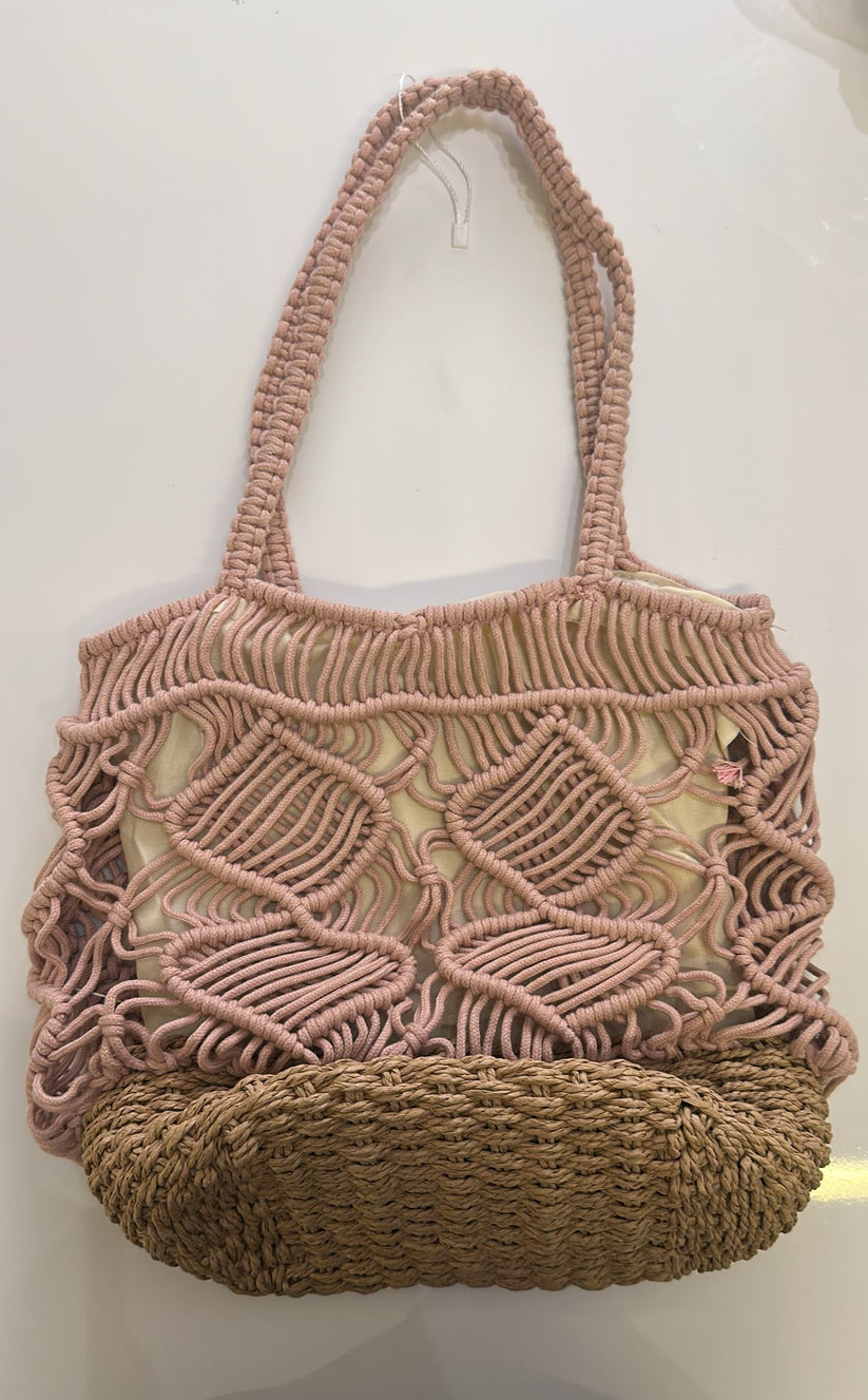 Macramé Knit Straw shoulder handle Tote