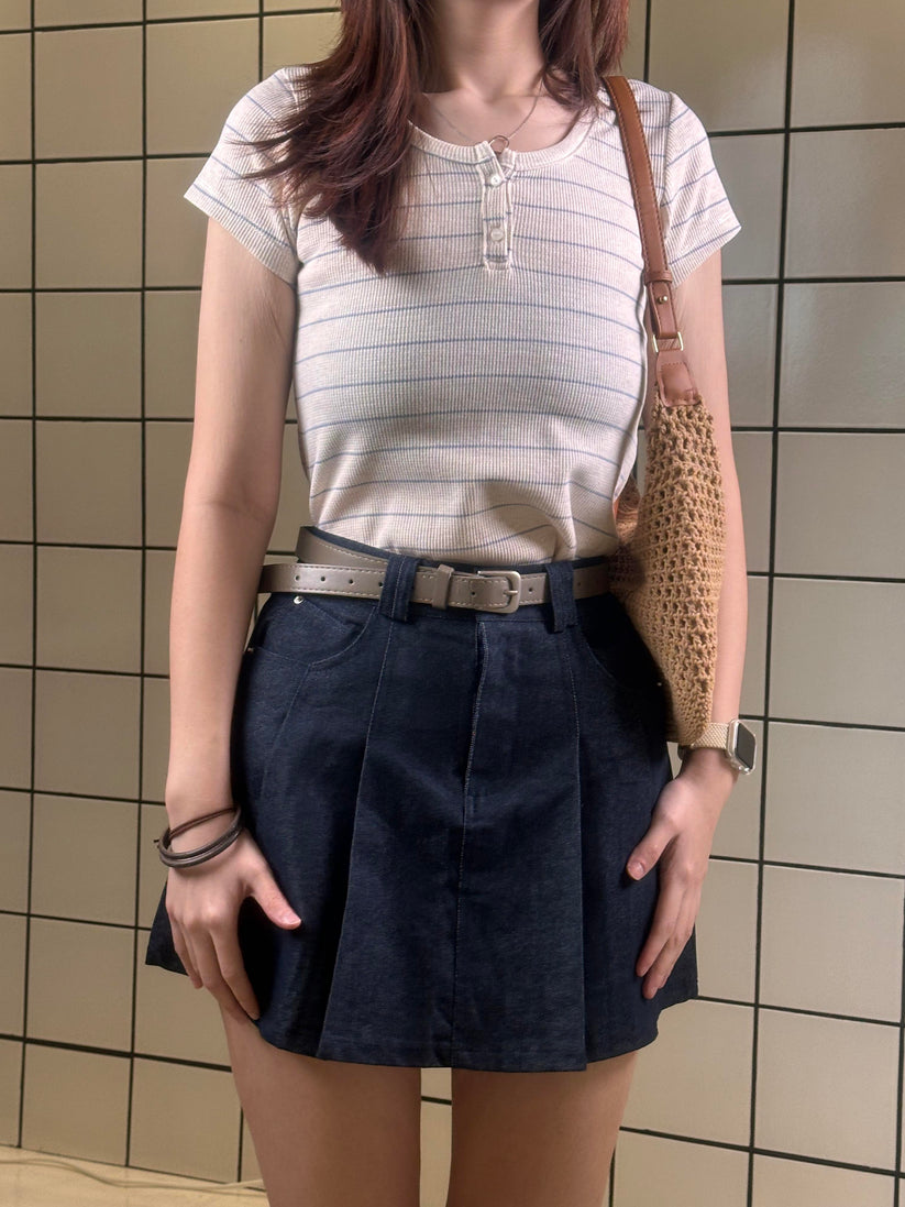 A women’s pleated skort designed with built-in inner shorts for confident, comfortable wear. Finished with structured front pleats, two functional side pockets, and a clean waistband, this style comes complete with a matching belt for easy styling. It offers the polished look of a skirt with the ease and coverage of shorts—ideal for everyday styling, casual outings, or smart-casual looks.